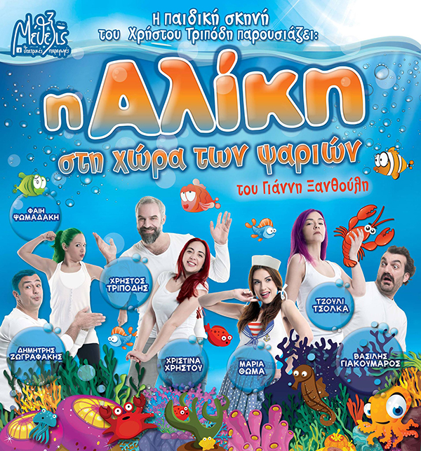 «Η Αλίκη στη χώρα των Ψαριών» θα δώσει 2 παραστάσεις το Σάββατο 20 Μαΐου στις 5.30 και στις 7.30 το απόγευμα στο αμφιθέατρο του Εργατικού Κέντρου.