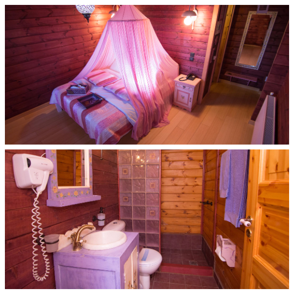 Το πιο δημοφιλές από τα ξύλινα δωμάτια του σαλέ, αφού είναι περιζήτητο για τι άλλο... για το χρώμα του φυσικά! Τα ροζ έπιπλα παραπέμπουν στην παιδική μας ηλικία, αλλά προσδίδουν και ρομαντική ατμόσφαιρα!