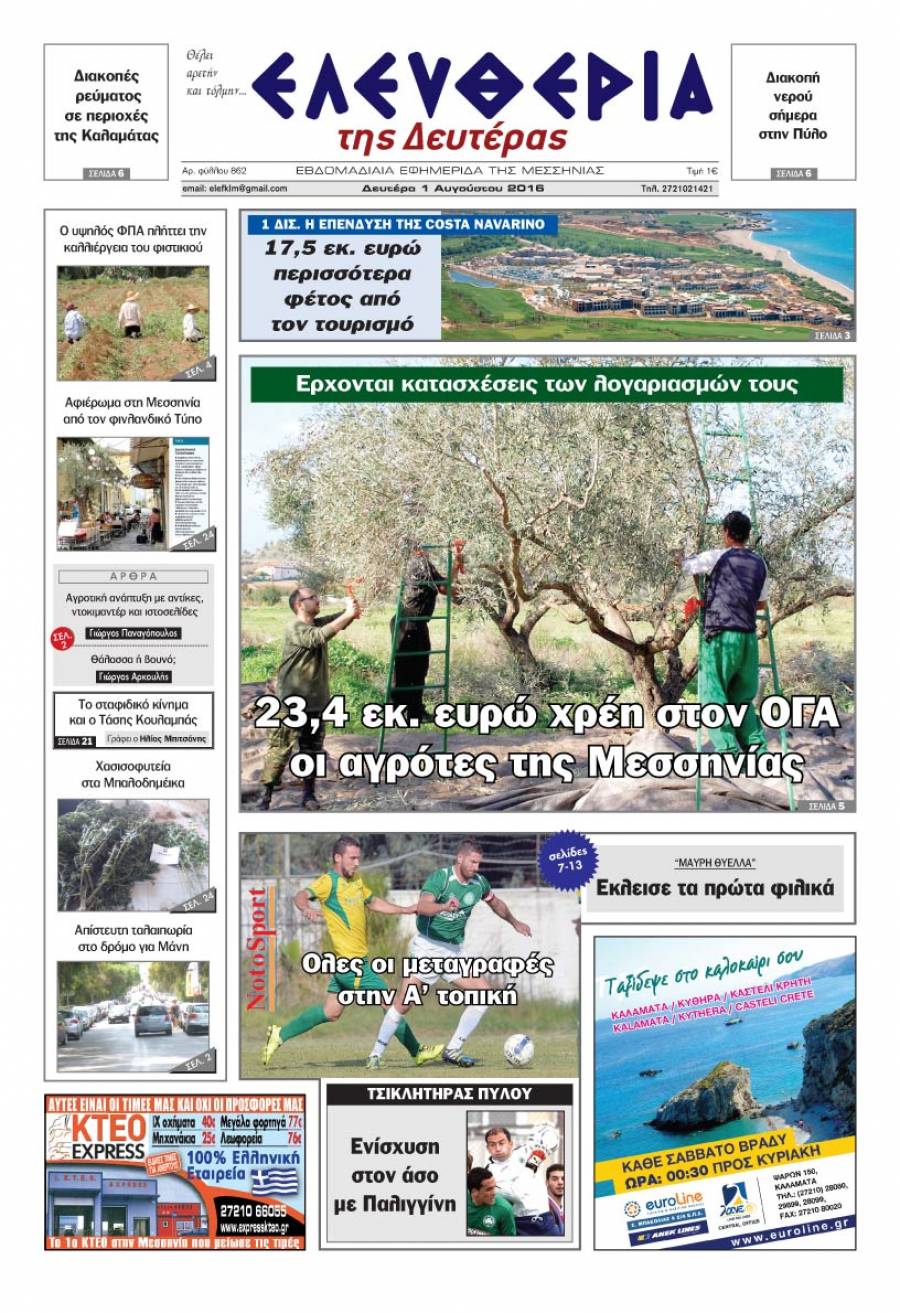 Το πρωτοσέλιδο της "Ελευθερίας της Δευτέρας" 1 Αυγούστου 2016 Για να κατεβάσετε το αρχείο πατήστε πάνω στο κουμπί που γράφει download pdf