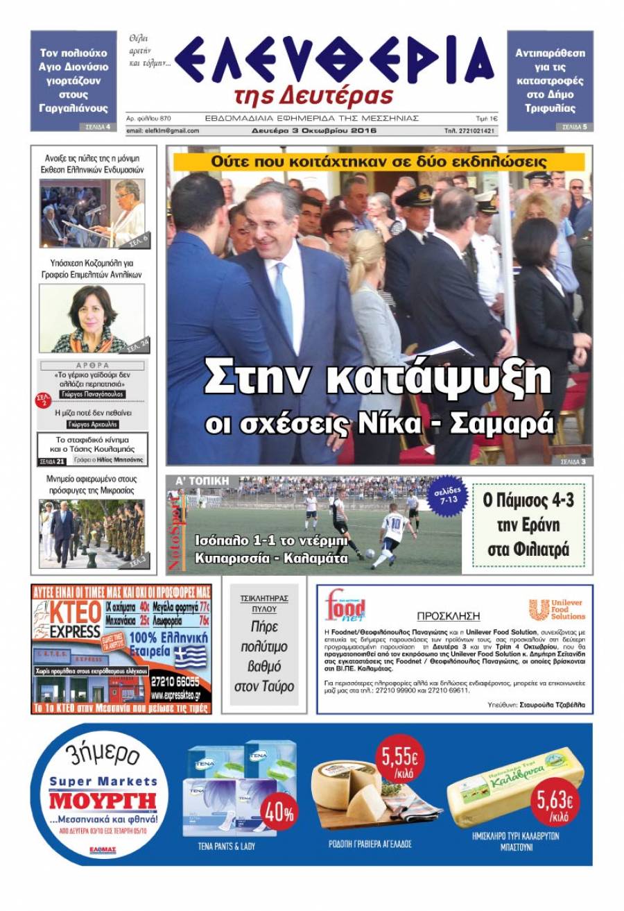 Το πρωτοσέλιδο της "Ελευθερίας της Δευτέρας" - 3 Οκτωβρίου 2016 Για να κατεβάσετε το αρχείο πατήστε πάνω στο κουμπί που γράφει download pdf