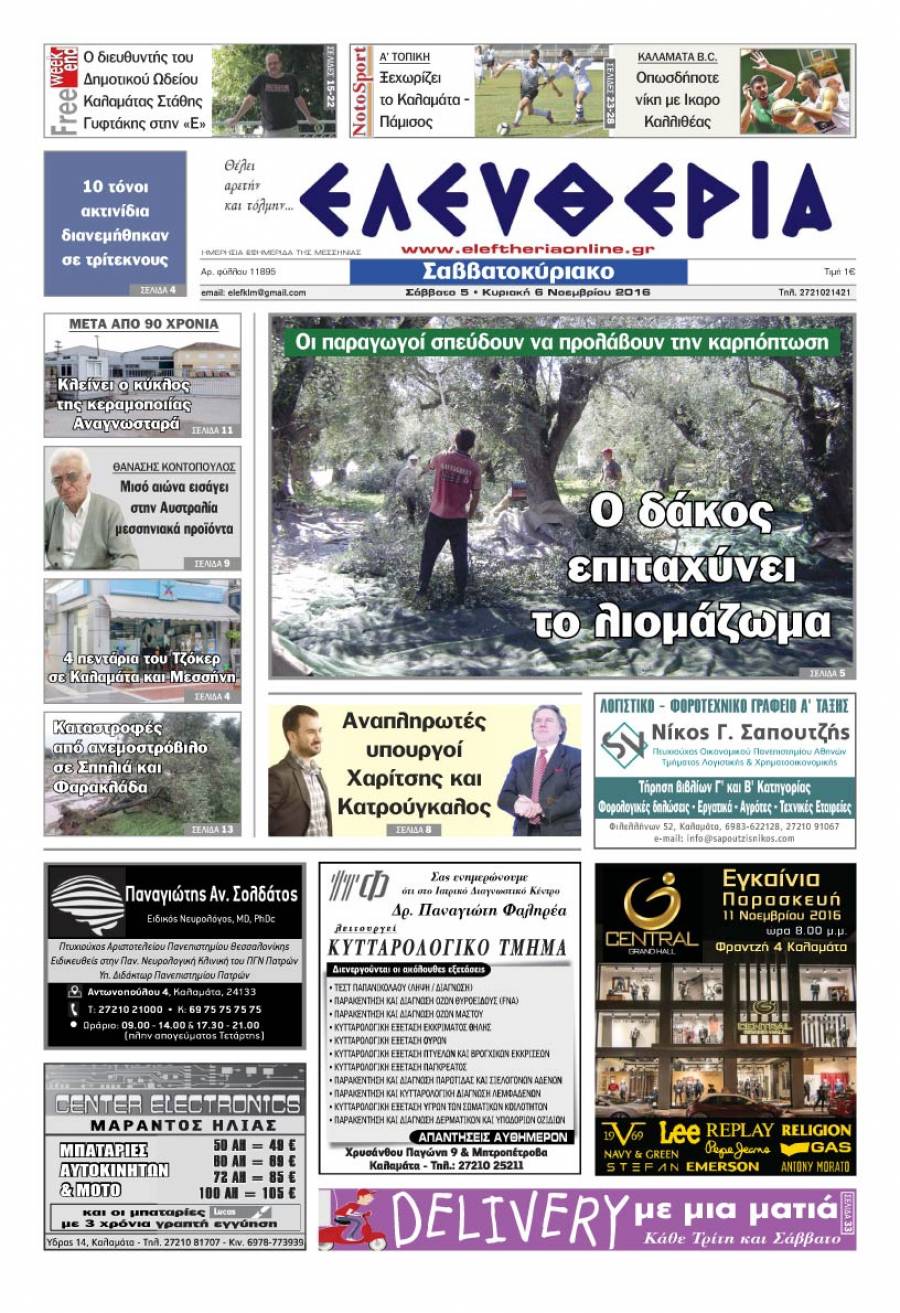 Το πρωτοσέλιδο της "Ελευθερίας Σαββατοκύριακο" 5-6 Νοεμβρίου 2016