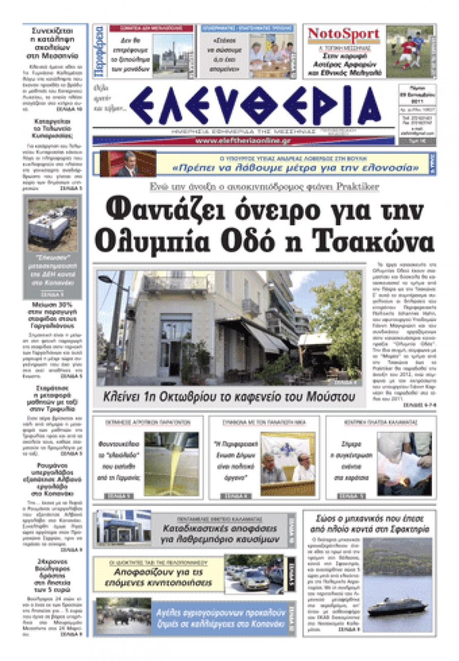Το πρωτοσέλιδο της "Ελευθερίας" 29 09 2011 Για να κατεβάσετε το αρχείο πατήστε πάνω στο κουμπί που γράφει download pdf