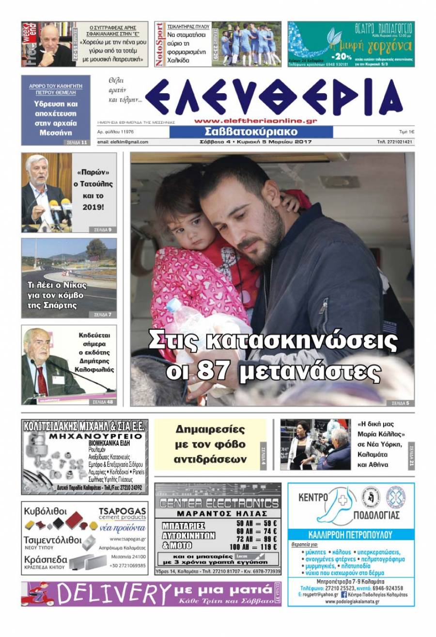 Το πρωτοσέλιδο της "Ελευθερίας Σαββατοκύριακο" 4-5 Μαρτίου 2017 Για να κατεβάσετε το αρχείο πατήστε πάνω στο κουμπί που γράφει download pdf