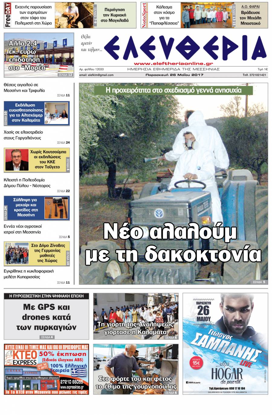 Το πρωτοσέλιδο της "Ελευθερίας" - Παρασκευή 26 Μαΐου 2017 Για να κατεβάσετε το αρχείο πατήστε πάνω στο κουμπί που γράφει download pdf