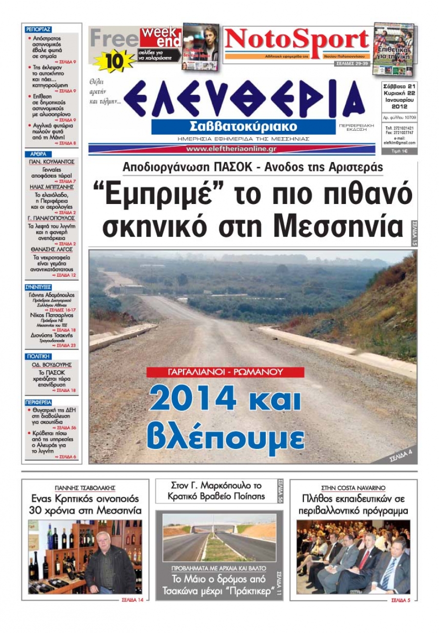 Ελευθερία Σαββατοκύριακου 21-22 Ιανουαρίου 2012 - Εντυπη έκδοση