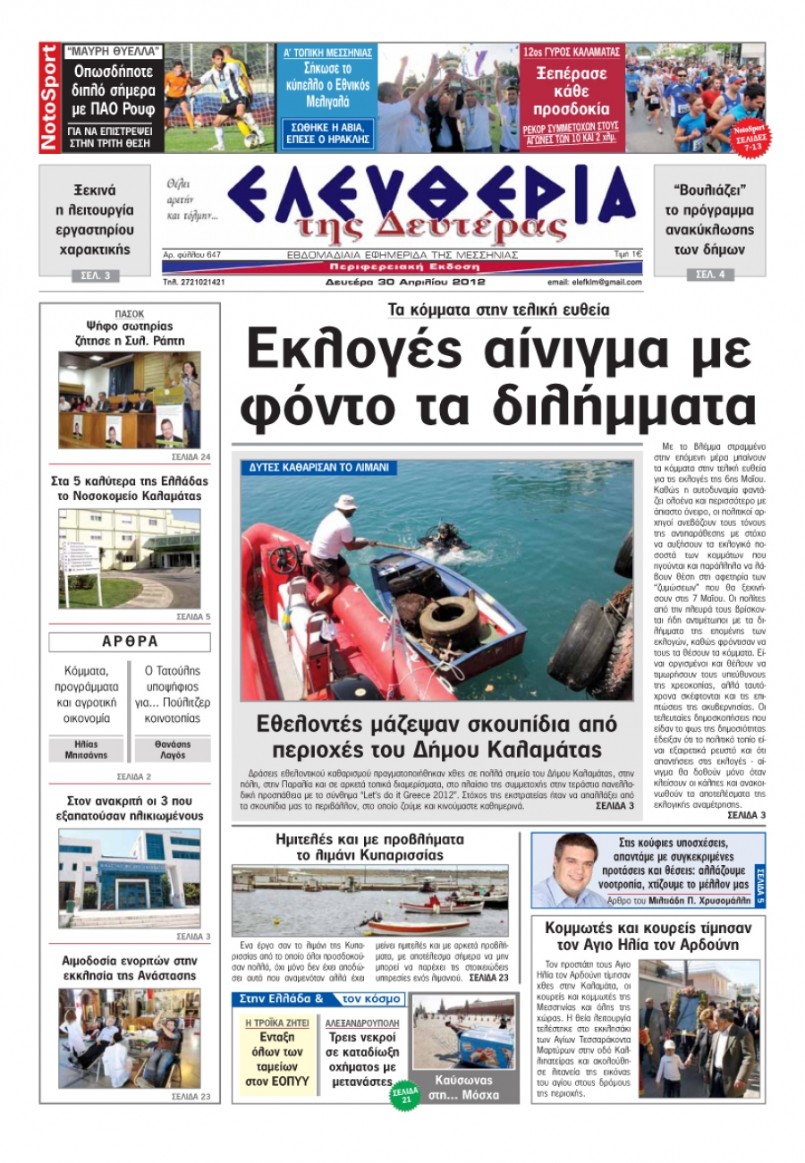 Εντυπη έκδοση 30 Απριλίου 2012 σε μορφή pdf Για να κατεβάσετε το αρχείο πατήστε πάνω στο κουμπί που γράφει download pdf