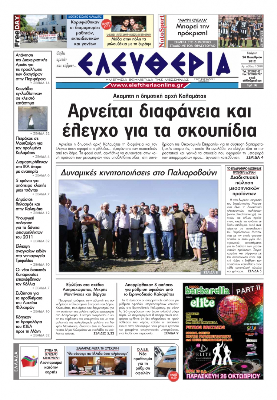 Το πρωτοσέλιδο της Τετάρτης 24 Οκτωβρίου 2012. Για να κατεβάσετε το αρχείο πατήστε πάνω στο κουμπί που γράφει download pdf