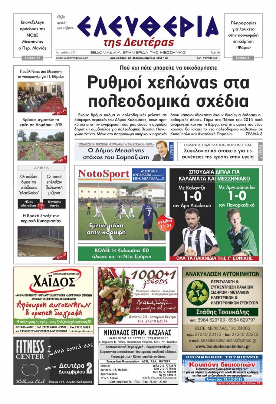 Το πρωτοσέλιδο της "Ελευθερίας" της Δευτέρας 2 Δεκεμβρίου 2013 Για να κατεβάσετε το αρχείο πατήστε πάνω στο κουμπί που γράφει download pdf