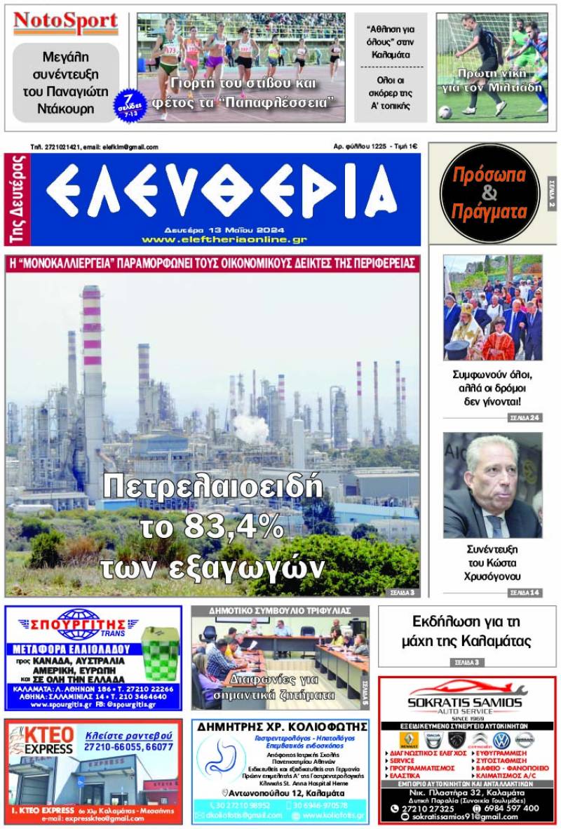 Το πρωτοσέλιδο της "Ελευθερίας της Δευτέρας" 13 Μαΐου 2024 Για να κατεβάσετε το αρχείο πατήστε πάνω στο κουμπί που γράφει download pdf