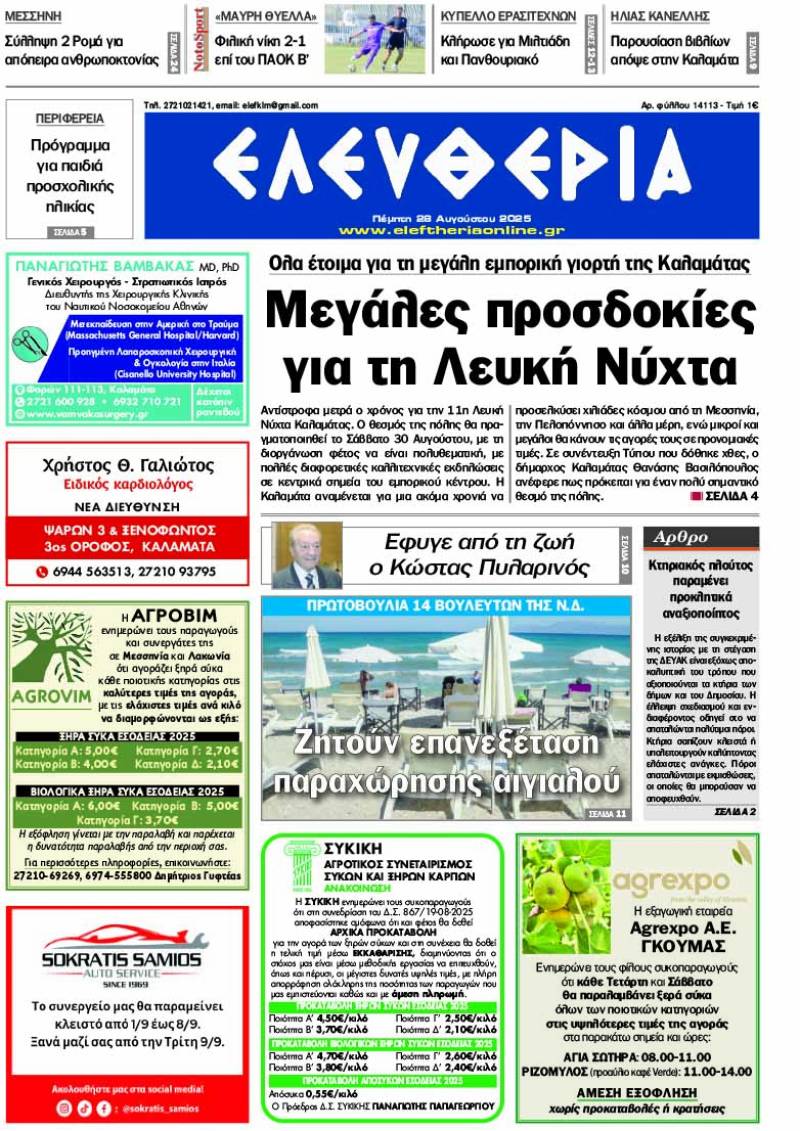 Το πρωτοσέλιδο της "Ελευθερίας" - Πέμπτη 28 Αυγούστου 2025 Για να κατεβάσετε το αρχείο πατήστε πάνω στο κουμπί που γράφει download pdf