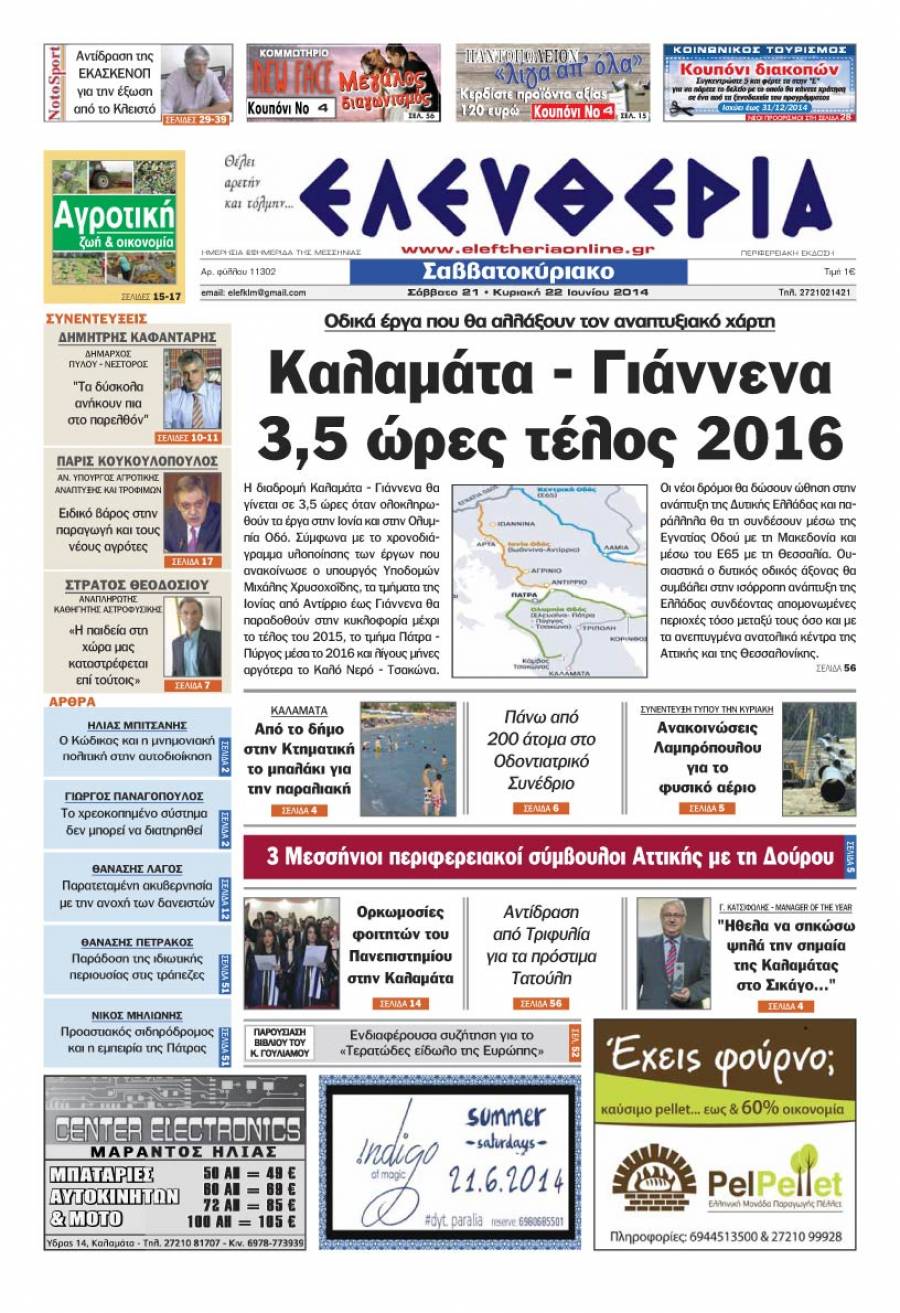 Το πρωτοσέλιδο της "Ελευθερίας" Σαββατοκύριακο 21-22 Ιουνίου 2014 Για να κατεβάσετε το αρχείο πατήστε πάνω στο κουμπί που γράφει download pdf