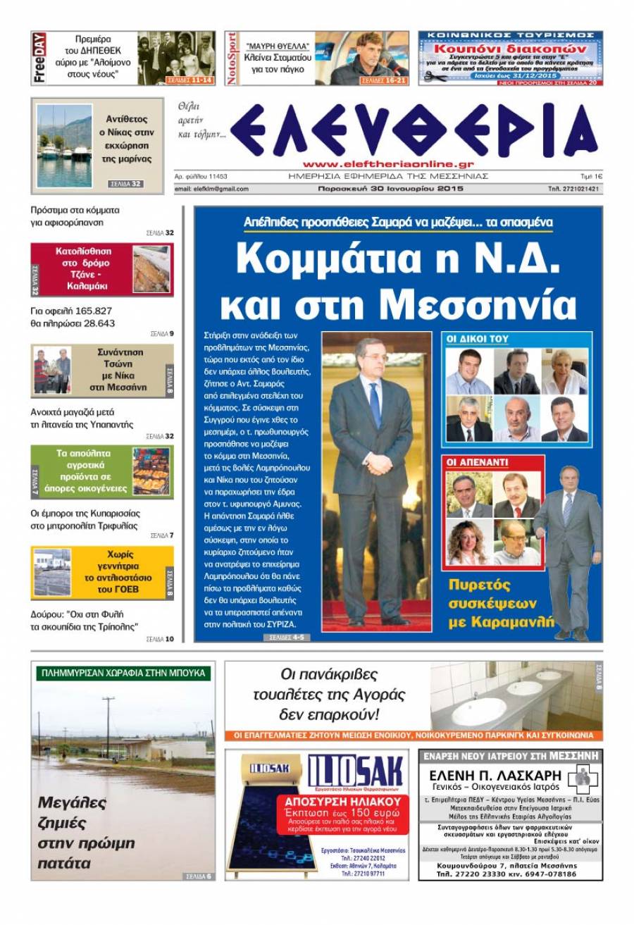 Το πρωτοσέλιδο της "Ελευθερίας" της Παρασκευής 30 Ιανουαρίου 2015 Για να κατεβάσετε το αρχείο πατήστε πάνω στο κουμπί που γράφει download pdf