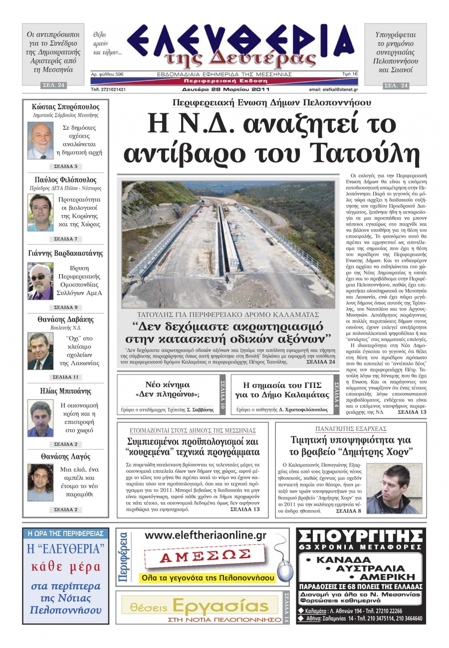 Το πρωτοσέλιδο της "Ελευθερίας" 28 3 2011 Για να κατεβάσετε το αρχείο πατήστε πάνω στο κουμπί που γράφει download pdf