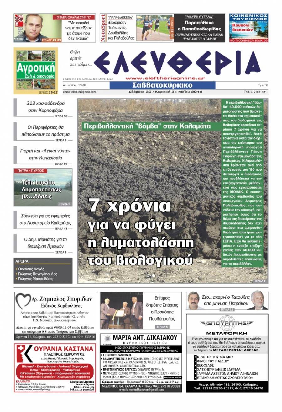Το πρωτοσέλιδο της "Ελευθερίας Σαββατοκύριακο" 30 και 31 Μαΐου 2015 Για να κατεβάσετε το αρχείο πατήστε πάνω στο κουμπί που γράφει download pdf
