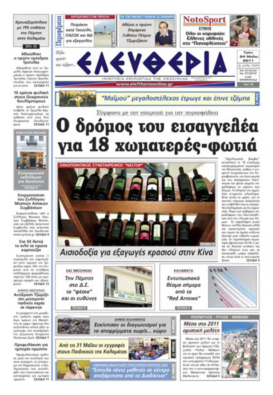 Το πρωτοσέλιδο της "Ελευθερίας" 24 05 2011 Για να κατεβάσετε το αρχείο πατήστε πάνω στο κουμπί που γράφει download pdf