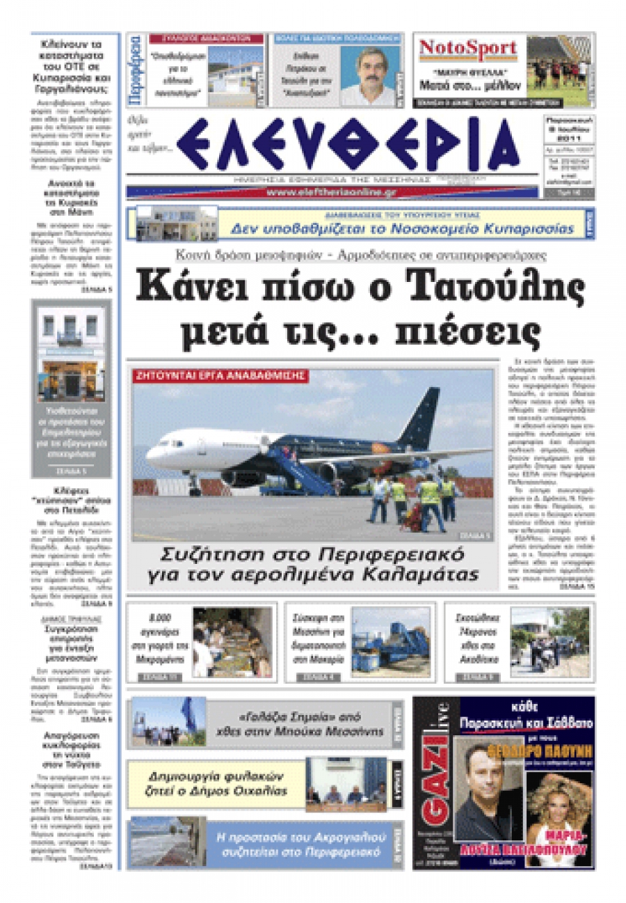 Το πρωτοσέλιδο της "Ελευθερίας" 8 Ιουλίου 2011 Για να κατεβάσετε το αρχείο πατήστε πάνω στο κουμπί που γράφει download pdf