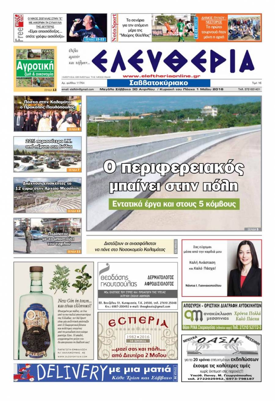 Ελευθερία Μ. Σάββατο 30 Aπριλίου & Κυριακή του Πάσχα 1 Μαΐου 2016