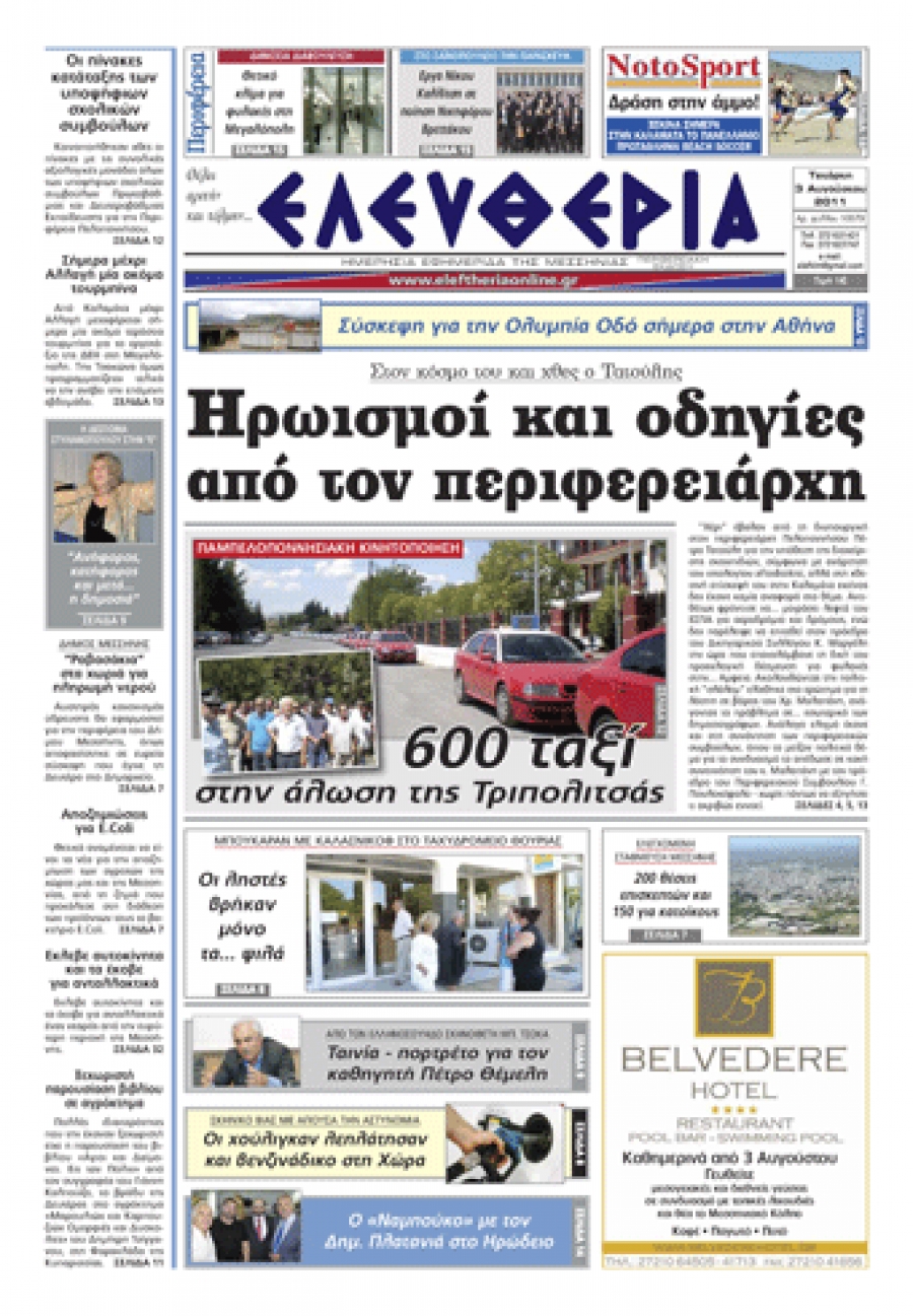 Το πρωτοσέλιδο της "Ελευθερίας" 3 Αυγούστου 2011 Για να κατεβάσετε το αρχείο πατήστε πάνω στο κουμπί που γράφει download pdf