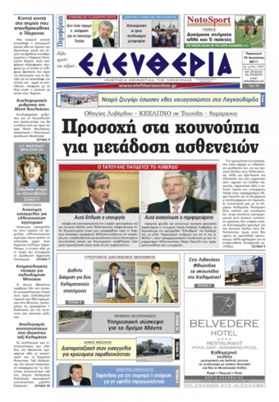 Το πρωτοσέλιδο της "Ελευθερίας" 12 08 2011 Για να κατεβάσετε το αρχείο πατήστε πάνω στο κουμπί που γράφει download pdf