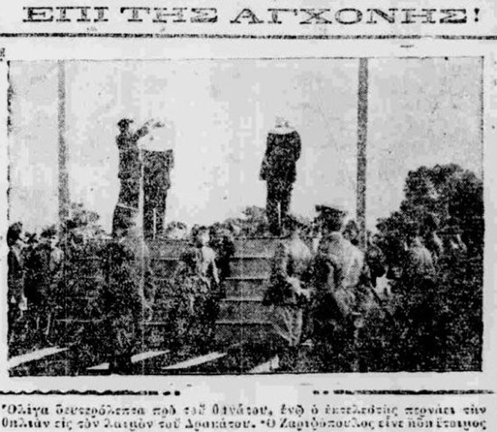 Στις 27 Νοεμβρίου του 1925, περισσότερα από 800 αυτοκίνητα και 15 χιλιάδες κόσμος συγκεντρώνονταν στο Γουδή. Το σπουδαίο γεγονός της ημέρας δεν ήταν κάποια κοσμική εκδήλωση, αλλά η κρεμάλα που περίμενε τους δύο καταχραστές του δημοσίου χρήματος. Τον Αντισυνταγματάρχη Διαχειρίσεως, Διονύσιο Δρακάτο και τον Αντισυνταγματάρχη της Χωροφυλακής και Διευθυντή της Αστυνομίας στη Θεσσαλονίκη, Γ. Ζαφειρόπουλο. «Υπήρχον πολλοί οίτινες και διενυκτέρευσαν εκεί. Από της 7ης δε ώρας μια ατελεύτητος σειρά αυτοκινήτων εκόμιζε διαρκώς νέα κύματα κόσμου», έγραφαν οι εφημερίδες για την πρωτοφανή συγκέντρωση πολιτών, που ήθελαν να παρακολουθήσουν το μακάβριο θέαμα.