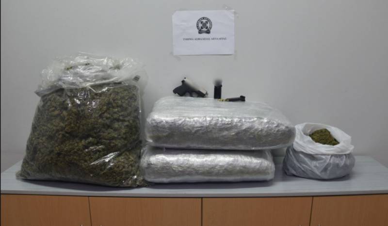 Σε έρευνα που ακολούθησε στο ένα αυτοκίνητο, οι αστυνομικοί βρήκαν στο χώρο των αποσκευών δυο βαλίτσες, που περιείχαν τέσσερις συσκευασίες με κάνναβη, συνολικού βάρους 19 κιλών και 876 γραμμαρίων.