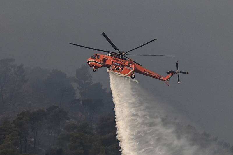Τα εναέρια μέσα που βρίσκονται συνεχώς πάνω από την περιοχή προσπαθούν να ελέγξουν ένα τεράστιο μέτωπο που ξεπερνά τα 10 χιλιόμετρα και συνεχώς δημιουργούνται αναζωπυρώσεις, λόγω των ισχυρών ανέμων.