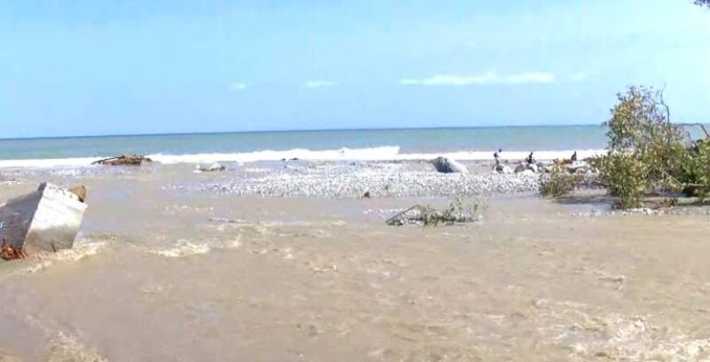 Στα πλάνα της ΕΡΤ φαίνεται το σημείο, όπου υπήρχε μία γέφυρα, η οποία πριν καταστραφεί συνέδεε το χωριό με την παραλία Παπά Νερό.