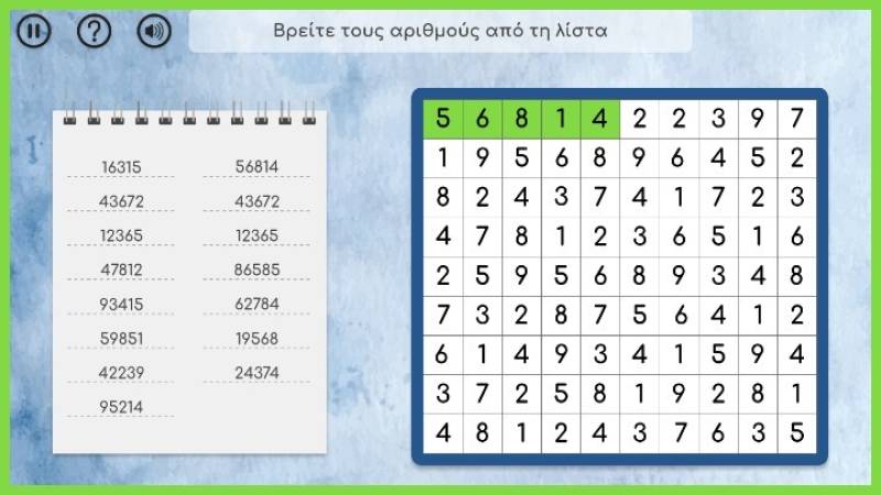 Στο πρώτο παιχνίδι με τίτλο «Cross Numbers» οι χρήστες καλούνται να ανιχνεύσουν ακολουθίες ψηφίων σε έναν πίνακα αριθμών μέσα από τρία διαφορετικά επίπεδα δυσκολίας. Το παιχνίδι βοηθά τους χρήστες να διεγείρουν τις δεξιότητες ανίχνευσης. Διεγείρει επίσης τη μνήμη τους, καθώς πρέπει να αναζητήσουν πολλές ακολουθίες ταυτόχρονα. Στο δεύτερο παιχνίδι «Alphabetical Order», ο στόχος είναι η ταξινόμηση λέξεων με σωστή αλφαβητική σειρά και πάλι με διαβάθμιση δυσκολίας. Και στα δύο παιχνίδια ένα άβαταρ καθοδηγεί τους χρήστες με αναλυτικές οδηγίες (tutorial) προσαρμοσμένες στο κάθε επίπεδο δυσκολίας.
