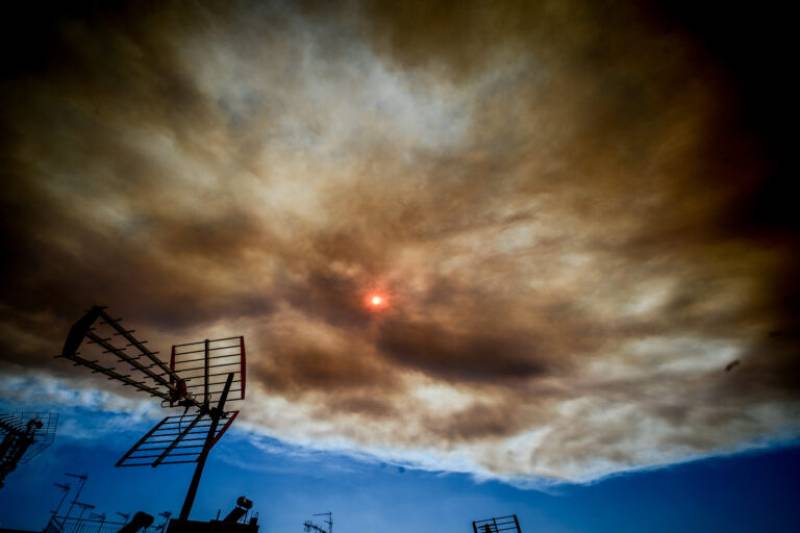 Ο ουρανός σε ολόκληρη την Αττική έχει κοκκινίσει, ενώ σύννεφα καπνού έχουν σκεπάσει ολόκληρες περιοχές, ιδιαίτερα στα βόρεια προάστια της Αθήνας.