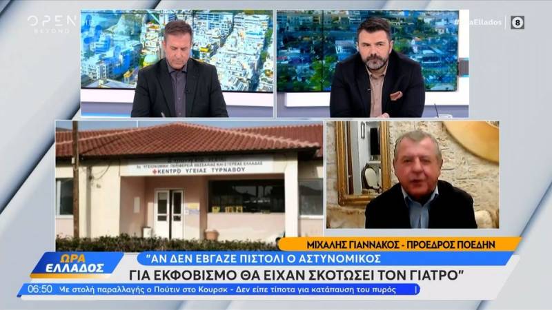 Σκηνές ακραίας βίας εκτυλίχθηκαν στο Κέντρο Υγείας Τυρνάβου, όταν ομάδα Ρομά επιτέθηκε σε γιατρούς και αστυνομικούς, με αποτέλεσμα να τραυματιστούν 5 άτομα, αναφέρει ο πρόεδρος ΠΟΕΔΗΝ Μιχάλης Γιαννάκος.