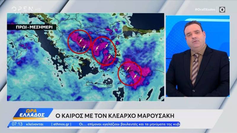 Συγκεκριμένα στις Κυκλάδες αναμένονται ισχυρές βροχές και καταιγίδες, οι οποίες μέχρι τις πρωινές ώρες ενδέχεται να είναι τοπικά επικίνδυνες.