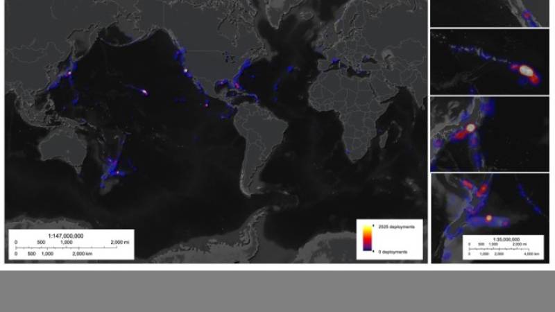 * Η φωτογραφία δείχνει τις παγκόσμιες δραστηριότητες κατάδυσης σε βαθιές θάλασσες την περίοδο 1958-2024. Credit: Ocean Discovery League