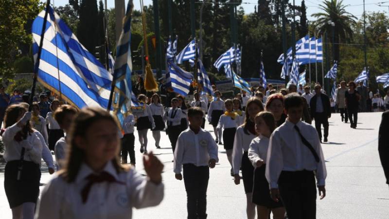 Αντιπροσωπευτικά τμήματα μαθητών και μαθητριών από όλα τα σχολεία του δήμου Αθηναίων παρήλασαν στο κέντρο της πόλης, περνώντας μπροστά από το μνημείο του Άγνωστου Στρατιώτη και το ελληνικό Κοινοβούλιο, συνοδεία της φιλαρμονικής ορχήστρας του Δήμου Αθηναίων.