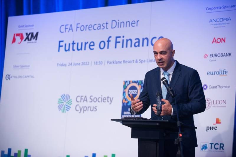 Καλωσορίζοντας τους εκλεκτούς προσκεκλημένους ο πρόεδρος του Συνδέσμου Χρηματοοικονομικών Αναλυτών CFA Κύπρου, 'Αλκης Χατζηττοφής, τόνισε ότι η παρουσία τους αποδεικνύει στην πράξη, το ζωτικό ρόλο που ο CFA Κύπρου διαδραματίζει στην τοπική χρηματοοικονομική κοινότητα, με αφορμή και τη συμπλήρωση 20 χρόνων από την ίδρυσή του.