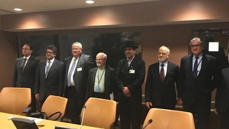 For 2nd consecutive yr, Ministers of Foreign Affairs of #ACForum members meet in NY on the margins of #UNGA. FM @NikosKotzias & counterparts reaffirmed will to bolster dialogue & cooperation/ Συνάντηση υπουργικού επιπέδου του Φόρουμ Αρχαίων Πολιτισμών στο περιθώριο ΓΣ ΟΗΕ σε ΝΥ pic.twitter.com/JepvNaV47K