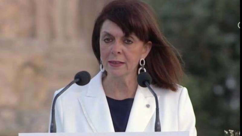 Κατά την αντιφώνησή της, η Πρόεδρος της Δημοκρατίας, αφού αναφέρθηκε αναλυτικά στη μακρόχρονη ιστορίας της Ερμιόνης από την αρχαιότητα μέχρι τις μέρες μας, έκανε λόγο για έναν ευλογημένο τόπο, όπου η ιστορία συναντά την ομορφιά της φύσης και η σύγχρονη ζωντάνια ένα σπάνιο βάθος πολιτισμού, εγγεγραμμένο στα ορατά ίχνη των μνημείων της, στην ιδιαίτερη αρχιτεκτονική της, στην καλαισθησία των κατοίκων της.