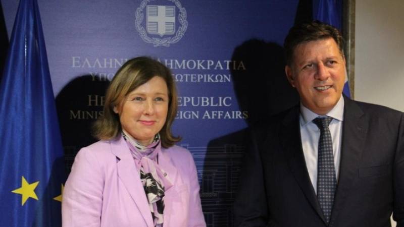 «Είχα τη χαρά να υποδεχτώ σήμερα στο υπουργείο Εξωτερικών την Αντιπρόεδρο της Ευρωπαϊκής Επιτροπής, αρμόδια για τις Αξίες και τη Διαφάνεια, Βιέρα Γιούροβα. Η Ελλάδα είναι προσηλωμένη στην υπεράσπιση των ευρωπαϊκών αξιών, της διαφάνειας, της ανεξαρτησίας των ΜΜΕ και του Κράτους Δικαίου» αναφέρει σε ανάρτησή του στο Twitter ο Μ. Βαρβιτσιώτης.