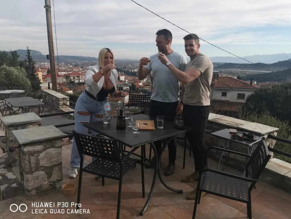 Το ζευγάρι μαζί με τη σκυλίτσα τους, Φάρλι, έκαναν μια στάση στο εστιατόριο «Μετεώρων Πανόραμα», με θέα την πόλη της Καλαμπάκας.