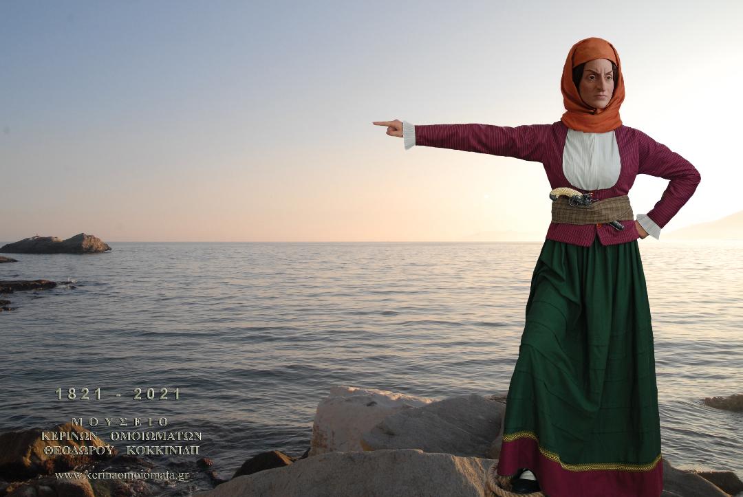 Ο Θόδωρος Κοκκινίδης, πριν από την τοποθέτηση των δυο ομοιωμάτων στους καλαίσθητους χώρους του μουσείου επέλεξε και φωτογράφισε τον Γέρο του Μοριά με φόντο τους πρόποδες του χρυσοφόρου όρους Παγγαίου και τη γενναία Υδραία καπετάνισσα με φόντο το θαλάσσιο κόλπο της Καβάλας.