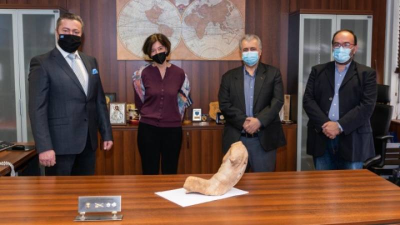 Το άγαλμα παρέδωσε, σε ειδική εκδήλωση, ο διοικητής της Διεύθυνσης Ασφάλειας Αττικής, υποστράτηγος Πέτρος Τζεφέρης, στη διευθύντρια της Διεύθυνσης Τεκμηρίωσης και Προστασίας Πολιτιστικών Αγαθών του υπουργείου Πολιτισμού και Αθλητισμού, Βασιλική Παπαγεωργίου.