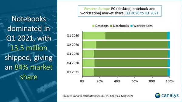Σε μεγάλο πρωταγωνιστή των πωλήσεων ηλεκτρονικών υπολογιστών στην περιοχή της Δυτικής Ευρώπης για το 1ο τρίμηνο του 2021 αναδείχθηκαν τα notebooks, όπως αναφέρει το imerisia.gr.