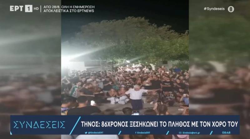 Viral έγινε στο διαδίκτυο ο 86χρονος κ. Αντώνης από την Τήνο που χόρεψε στο πανηγύρι της Καλλονής ζεϊμπέκικο και καταχειροκροτήθηκε.