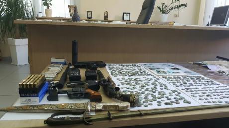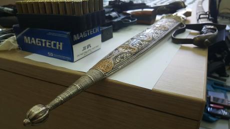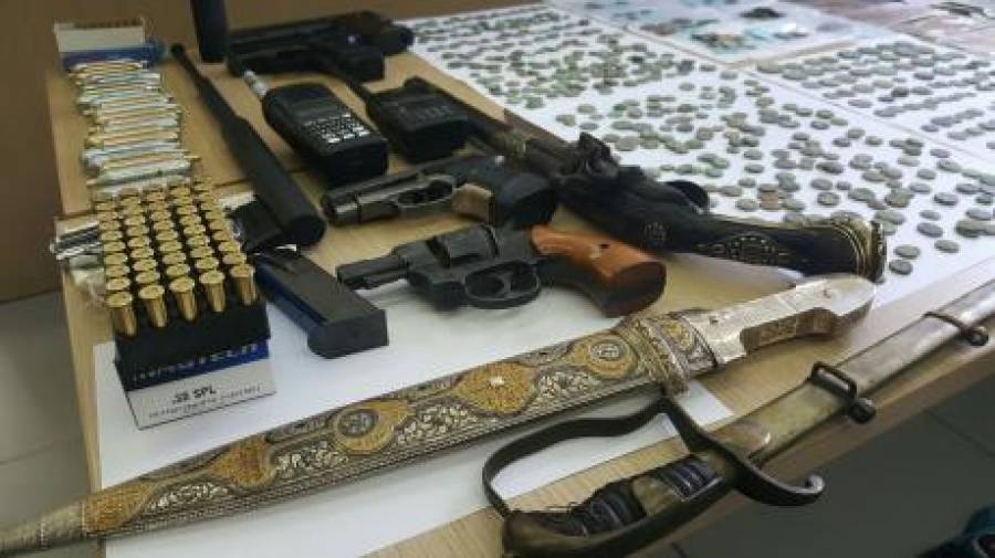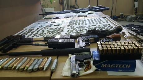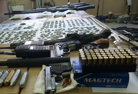 Τέσσερα κυνηγετικά όπλα, ένα πολεμικό τυφέκιο, ένα πιστόλι, δύο παλαιά περίστροφα, ένα περίστροφο κρότου, δύο αεροβόλα όπλα, δύο μαχαίρια, δύο σπαθιά, ένα ξίφος, ένα γκλοπ, μία παλαιά πιστόλα, εκατόν έντεκα φυσίγγια, είκοσι πέντε βολίδες, ογδόντα επτά κάλυκες, μία γεμιστήρα ένας σιγαστήρας και έντεκα καψύλλια περιστρόφου κρότου.