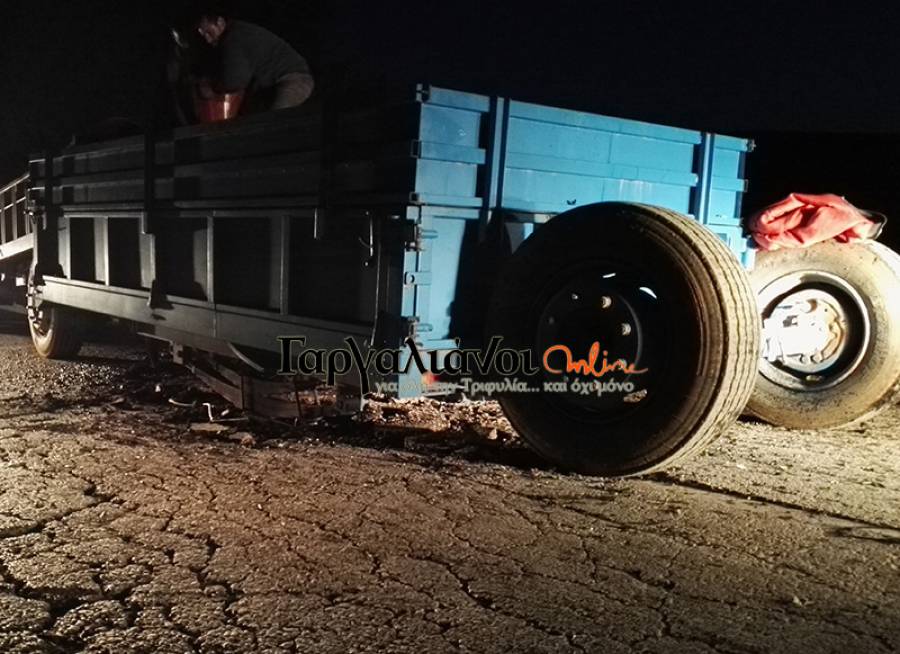 Σύμφωνα με το gargalianoionline.gr o οδηγός του τρακτέρ ο οποίος είχε φορτωμένη την καρότσα με περίπου 4 τόνους ελαιόκαρπο δεν πίστευε αυτό που έγινε του όταν λίγο έξω από τη Βάλτα, με κατεύθυνση προς τους Γαργαλιάνους, ξαφνικά άκουσε ένα πολύ δυνατό κρότο και είδε ότι αποκολλήθηκε ο άξονας της καρότσας! Ο ίδιος κινδύνευσε καθώς η απότομη μετακίνηση τον τράνταξε στην κυριολεξία, ενώ μπόρεσε και κρατήθηκε από το τιμόνι του αγροτικού μηχανήματος για να μην βρεθεί στο έδαφος.