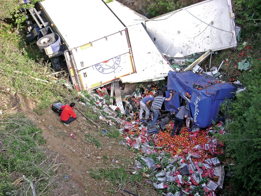 Το βαρύ όχημα πέφτοντας δίπλωσε στην μέση και μεταμορφώθηκε σε άμορφη μάζα σιδερικών με τα προϊόντα να έχουν διασκορπιστεί παντού. Εχοντας τύχη βουνό ο οδηγός του οχήματος κατάφερε να βγει μέσα από την καμπίνα οδήγησης χωρίς να έχει πάθει τίποτα. Από εκεί έχοντας υποστεί ισχυρό σοκ σκαρφάλωσε μέχρι το ύψος του δρόμου όπου και ειδοποίησε τους ιδιοκτήτες της εταιρείας για το τι είχε συμβεί.