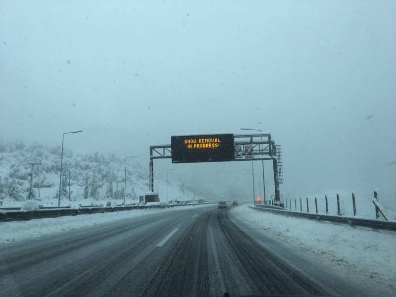 Σύμφωνα μάλιστα με ενημέρωση από την Αστυνομία η κυκλοφορία διεξάγεται μόνο με χρήση αντιολισθητικών αλυσίδων και σε τμήματα του αυτοκινητοδρόμου Κόρινθος - Τρίπολη - Καλαμάτα.