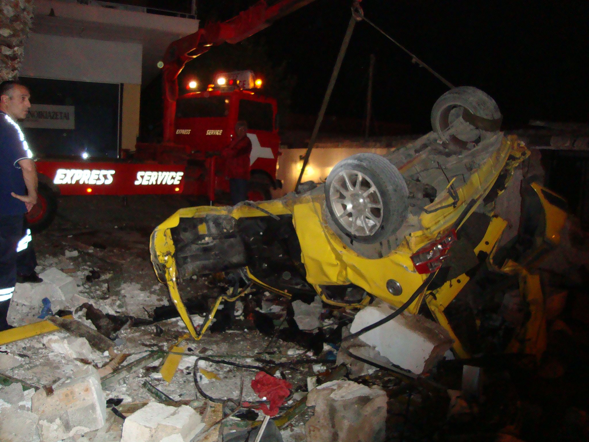 Σύμφωνα με περιγραφές, ο άτυχος συνοδηγός βρέθηκε νεκρός έξω από το αυτοκίνητο. Ο θάνατος και των δυο νέων ήταν ακαριαίος.