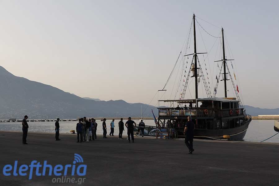 Οι μετανάστες μεταφέρθηκαν στο λιμάνι της μεσσηνιακής πρωτεύσας με το τουριστικό πλοίο "Albatros", συνοδεία των πλωτών της Καλαμάτας και της Πύλου -ενώ λίγο αργότερα λιμενικοί οδήγησαν το ιστιοπλοϊκό σκάφος που τους μετέφερε στο λιμάνι.