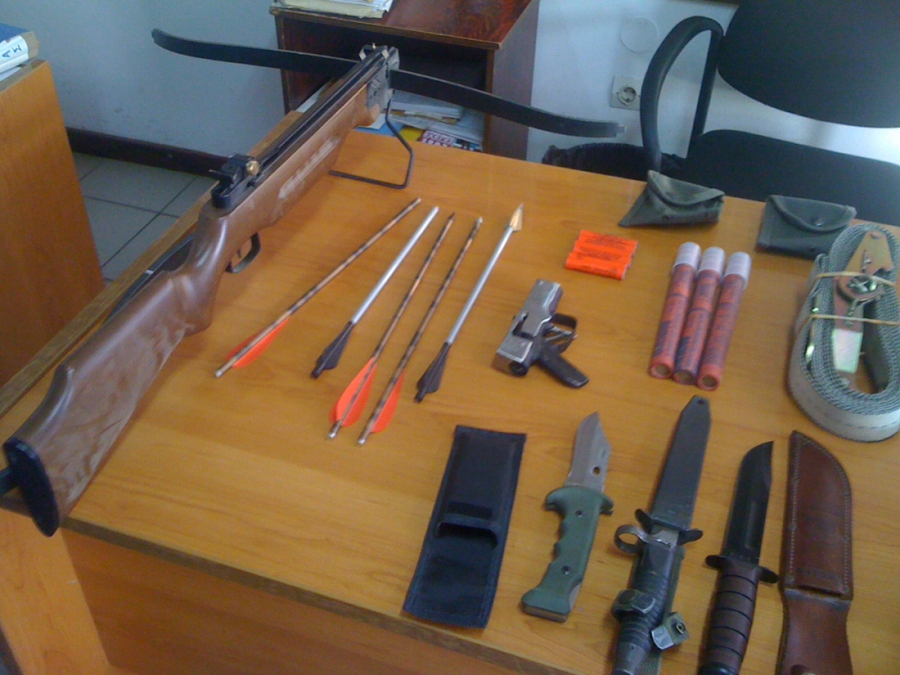 Κατά τη διάρκεια της επιχείρησης κατασχέθηκαν 1 πιστόλι, 2 κυνηγετικά όπλα, 2 μαχαίρια, 1 βαλλίστρα με τα εξαρτήματα της και 5 μεταλλικά βέλη, 3 φωτοβολίδες, 6 κροτίδες, 1 ξιφολόγχη, 100 γραμμάρια πυρίτιδας και διάφορα είδη, η προέλευση των οποίων και η νομιμότητα της κατοχής τους διερευνάται.