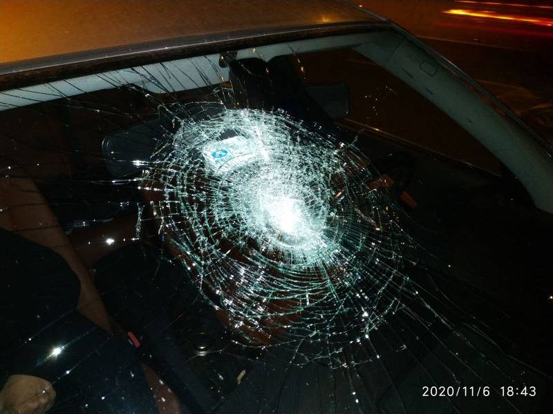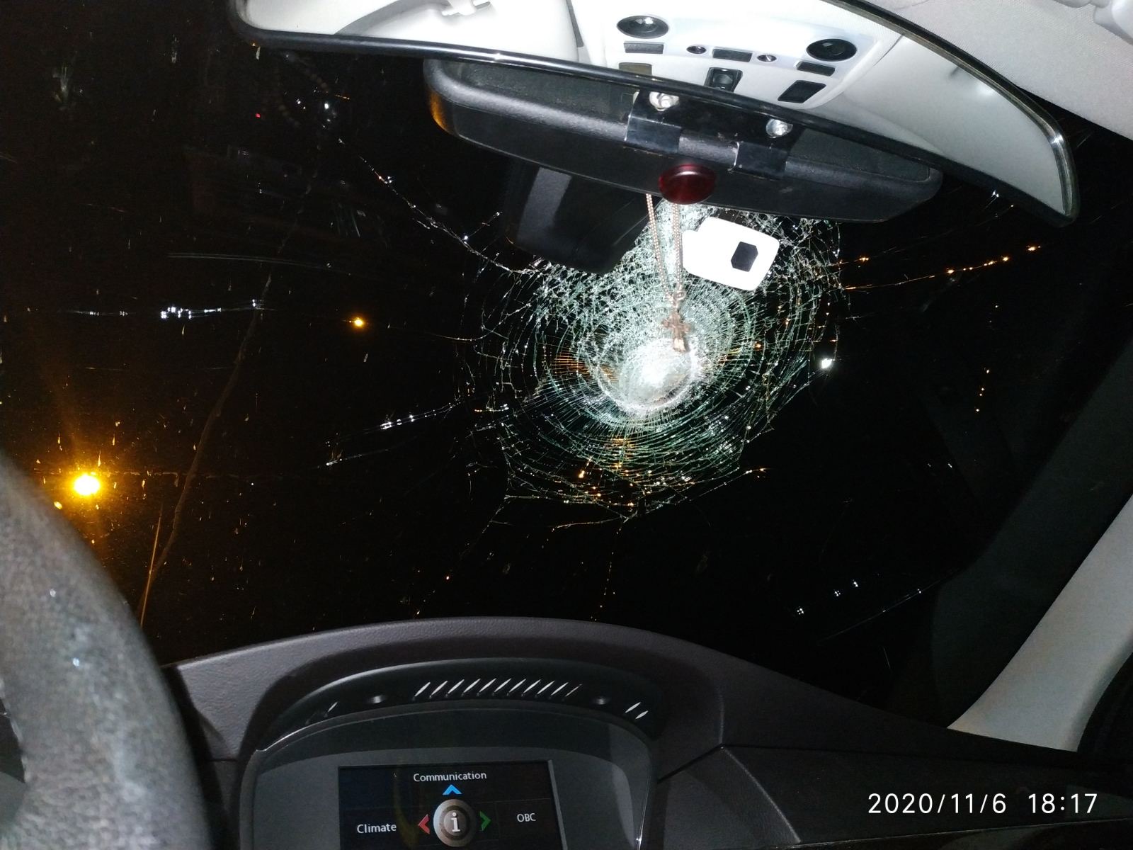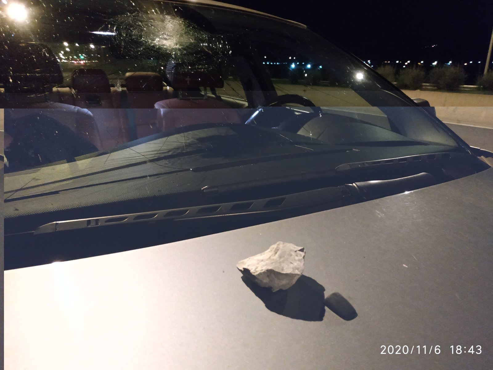 Η πέτρα, όπως φαίνεται και στη φωτογραφία ήταν μεγάλη, αλλά ευτυχώς το τζάμι δεν θρυμματίστηκε και δεν υπήρξε κάποιος τραυματισμός.